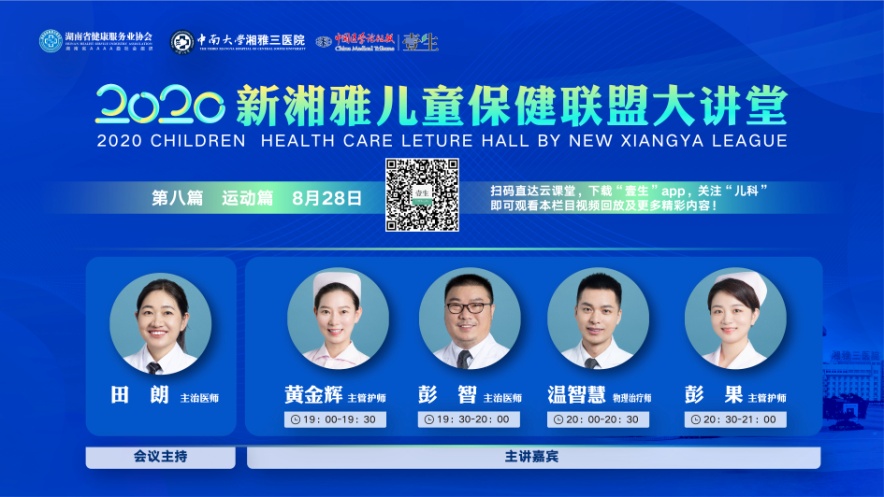由湖南省健康服務(wù)業(yè)協(xié)會(huì)、中南大學(xué)湘雅三醫(yī)院聯(lián)合主辦,湖南省健康服務(wù)業(yè)協(xié)會(huì)兒童生長(zhǎng)發(fā)育管理分會(huì)、中南大學(xué)湘雅三醫(yī)院兒科兒童保健中心共同承辦的“2020年新湘雅兒童保健聯(lián)盟大講堂”,于8月28日晚上舉辦了第八篇章之《運(yùn)動(dòng)篇》。
